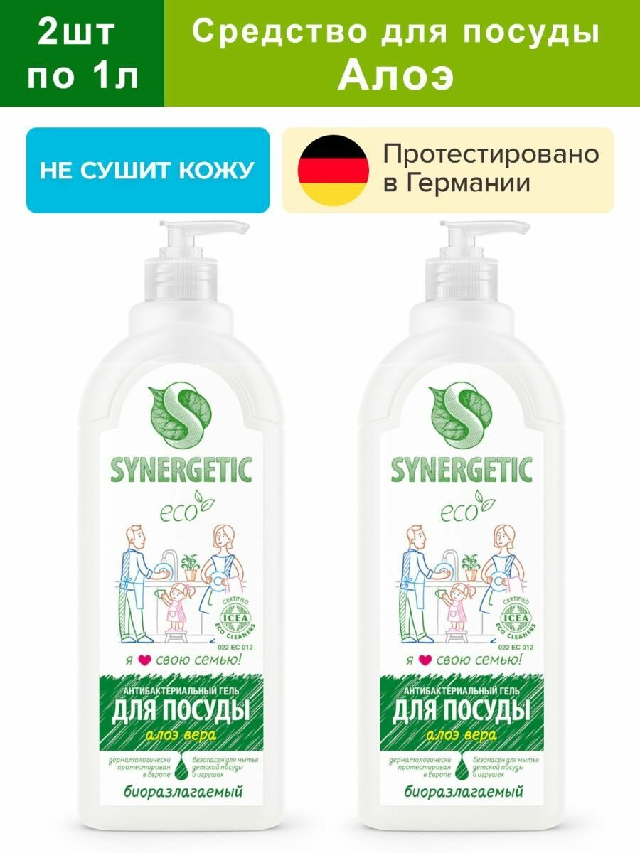 Гель для мытья посуды SYNERGETIC Алоэ, биоразлагаемый 1л 2шт 4623721671470/набор