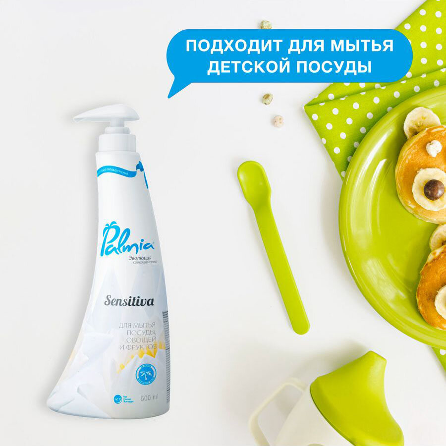 Palmia Sensitiva гипоаллергенное средство для мытья посуды. овощей и фруктов (бутылка) 500мл.