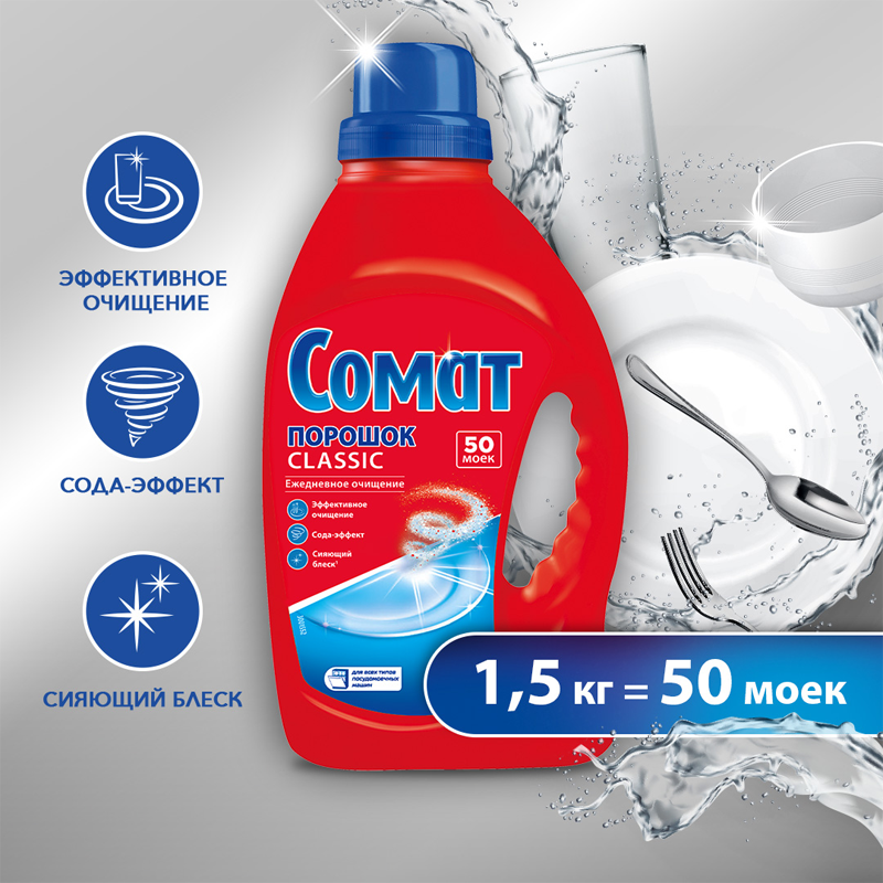 Порошок для посудомоечных машин Somat Classic, 1,5 кг
