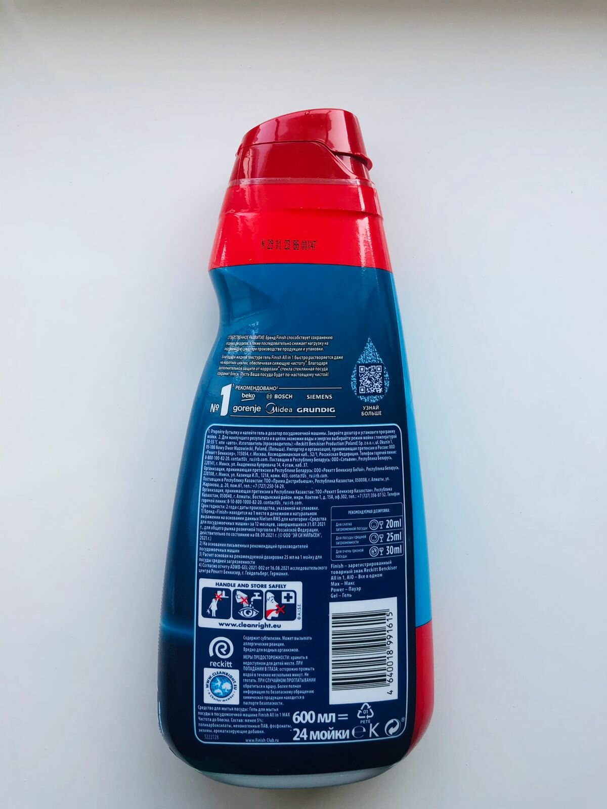 | Отзыв: | Гель очень удобный , хорошо отмывает вместе с ополаскивателем, Finish лучшее средство для пусудомоек |