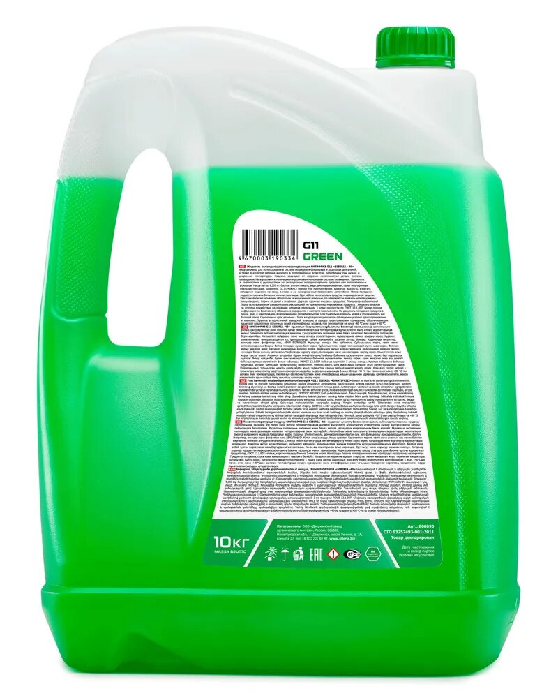 SIBIRIA 800090 Антифриз G11 SIBIRIA готовый 10кг -40°С зеленый 1шт