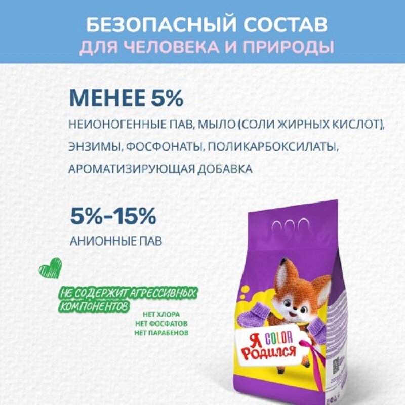 Я родился Порошок стиральный Color универсальный, 400 г