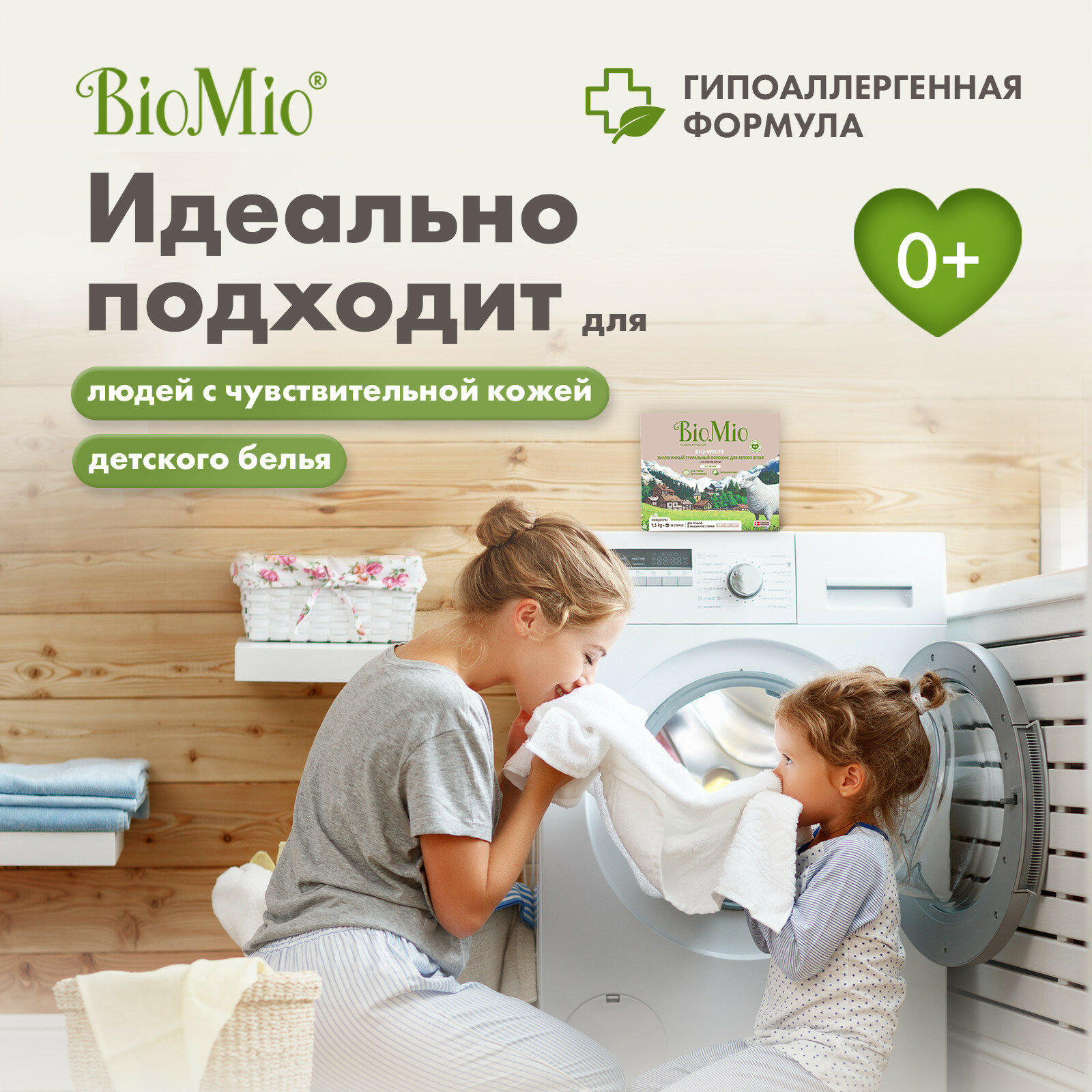 Стиральный порошок BioMio BIO-WHITE с экстрактом хлопка, 1.5 кг