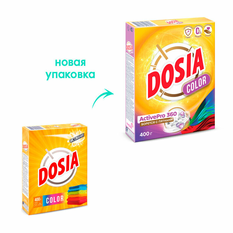 Стиральный порошок Dosia, 0.4 кг, автомат, для цветного белья, Color
