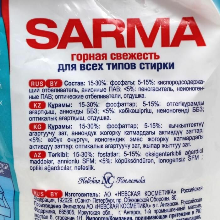 SARMA Стиральный порошок Актив Горная свежесть Универсальное, 800 г /