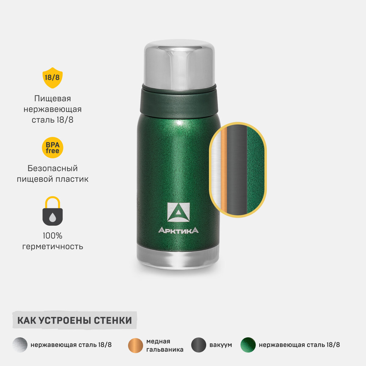 СохранитьАрктика Термос с узким горлом в американском дизайне 106-500 (Зеленый), 500 мл интересное: