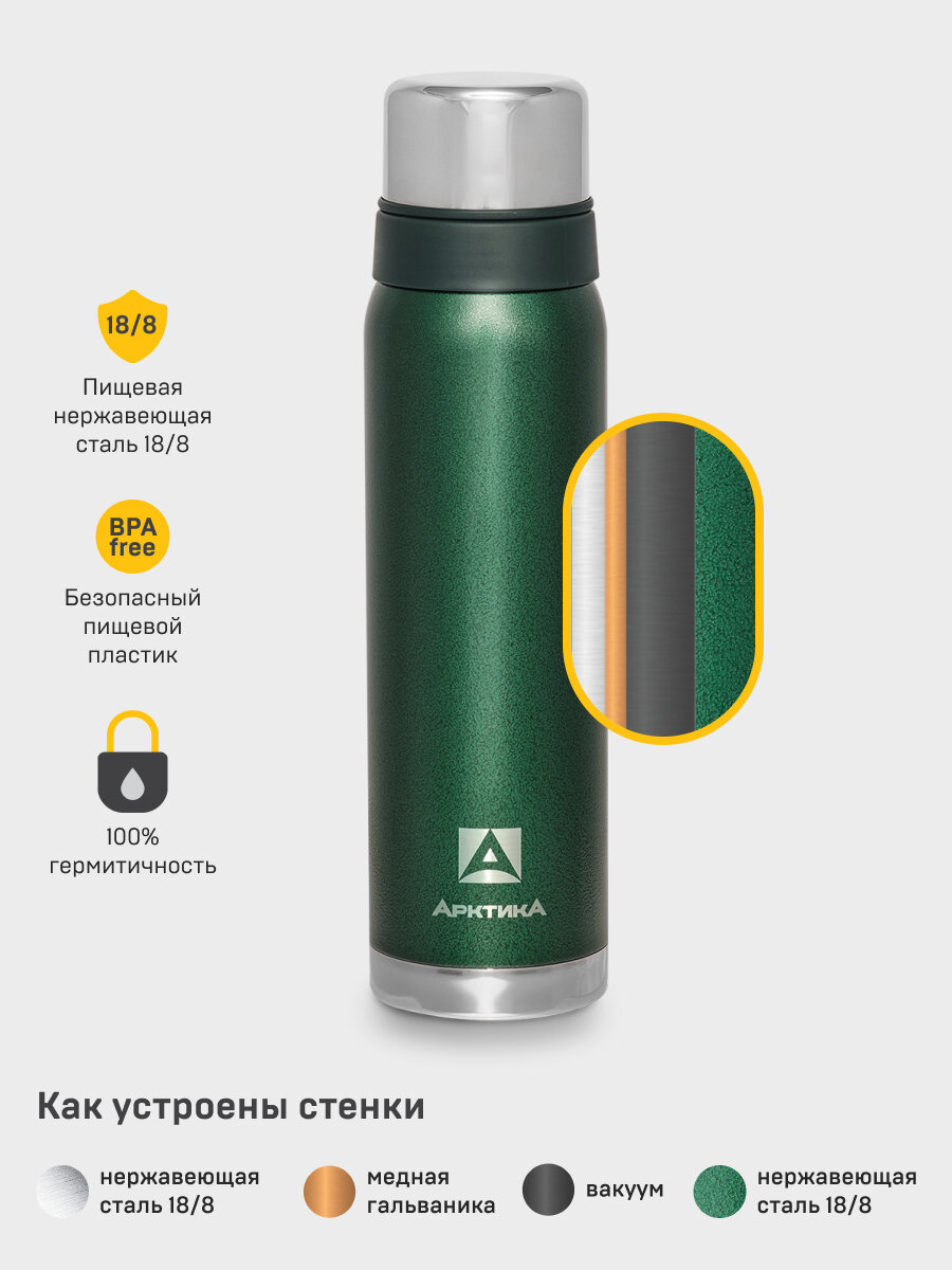 Арктика Термос "Арктика" 106, 900 мл, сохраняет тепло 28 ч, зеленый