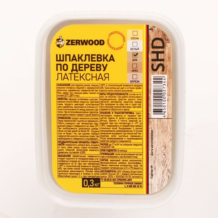 Купить Шпаклевка ZERWOOD SHD по дереву латексная дуб 0,3кг 7917496