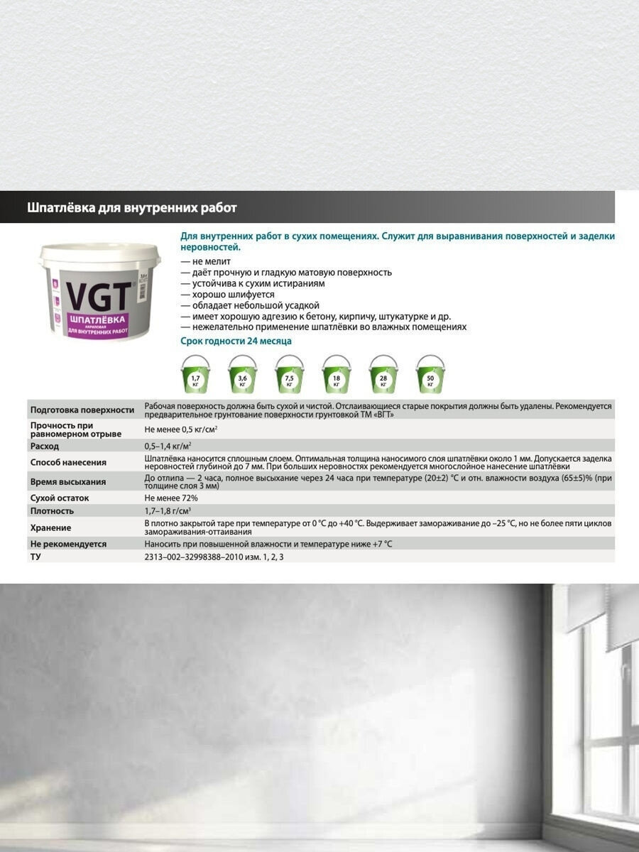 СохранитьШпатлевка для внутренних работ VGT 11603365 интересное: