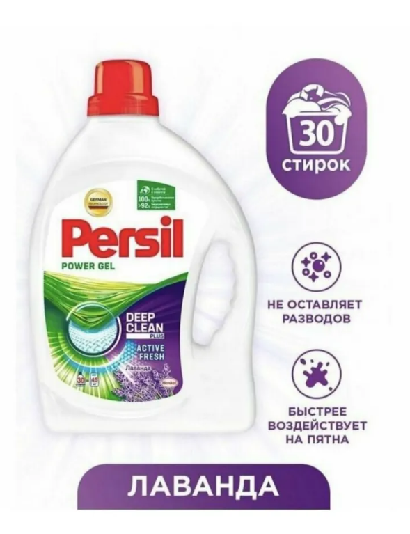 Гель для стирки Persil Power Deep Clean Лаванда, 1.95 л, бутылка
