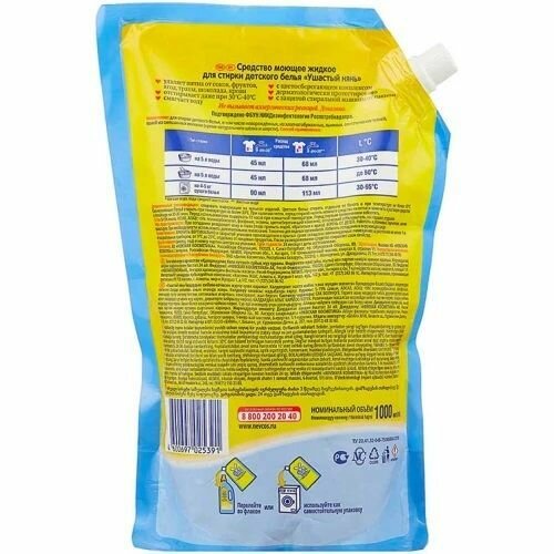 Гель для стирки детского белья Ушастый нянь ДОЙ-ПАК 1л 2539К