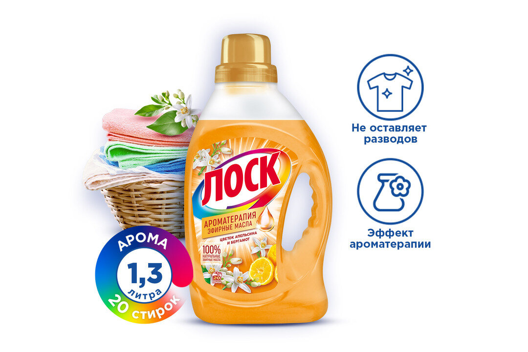Гель для стирки Лоск Ароматерапия"Цветущий апельсин", 1,46 л Losk 10530511 .