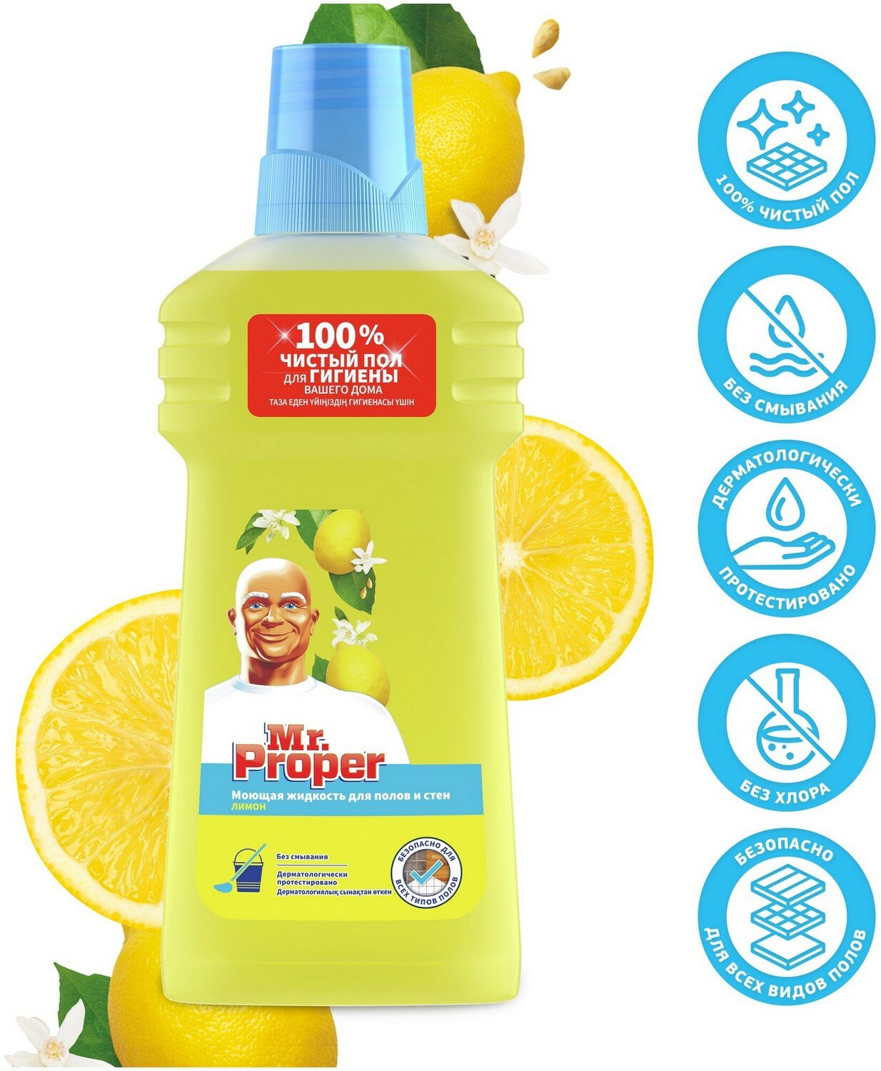Средство для мытья пола и стен 750 мл, MR.PROPER (Мистер Пропер) "Лимон" В комплекте: 1шт.
