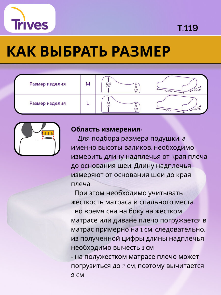 Подушка ортопедическая Тривес Т.119a L (2020), с эффектом памяти