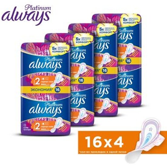 Always прокладки Platinum Ultra Normal Plus, 4 капли, 16 шт.