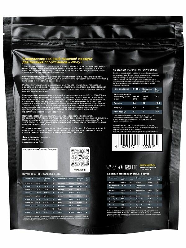 Сывороточный протеин Prime Kraft Whey Protein - 500 грамм (капучино)