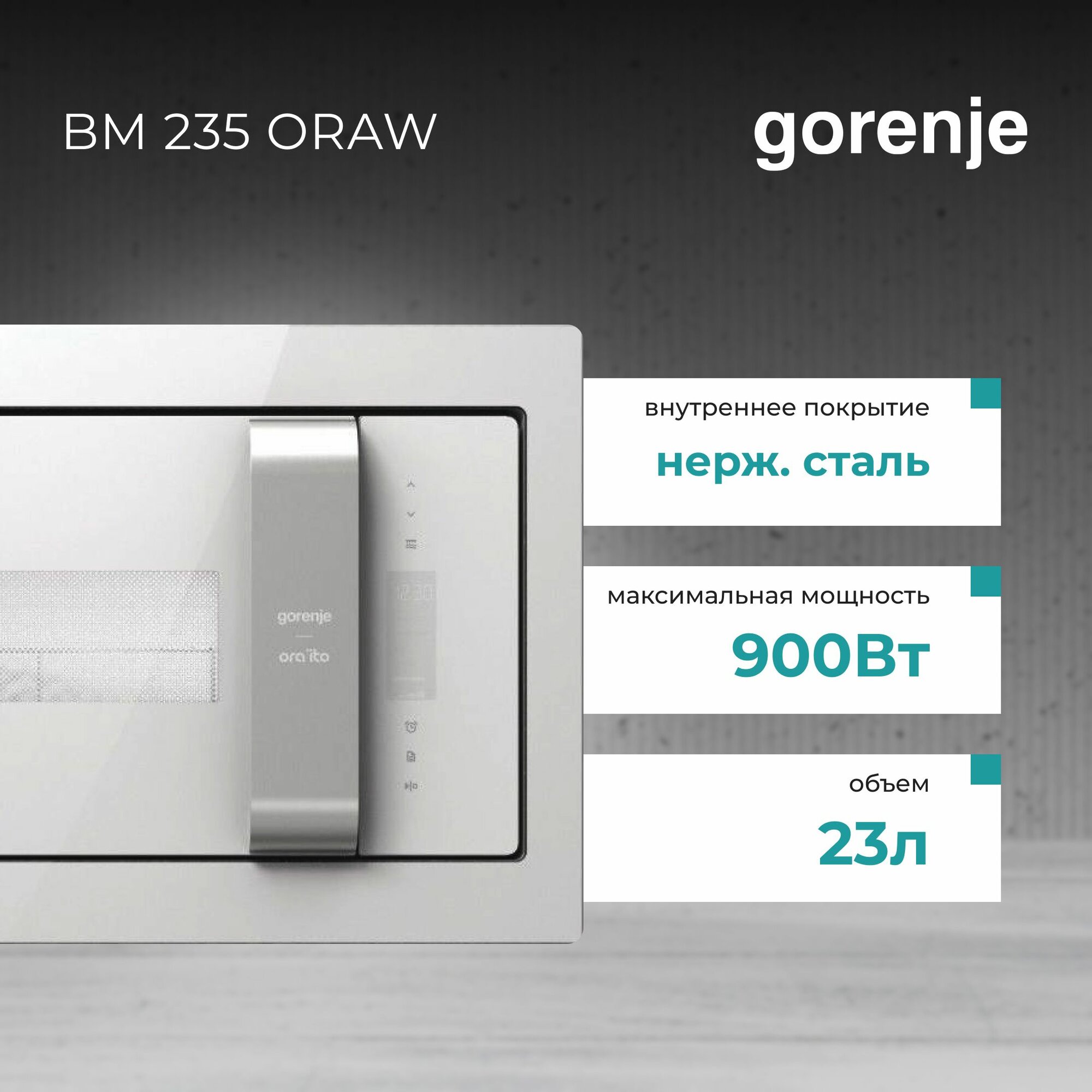 Микроволновая печь Gorenje BM235ORAW 23л. 900Вт белый/серебристый (встраиваемая)