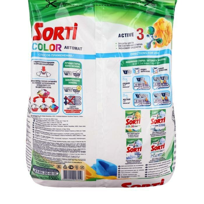 Стиральный порошок Sorti "Колор", Автомат, 4,5 кг