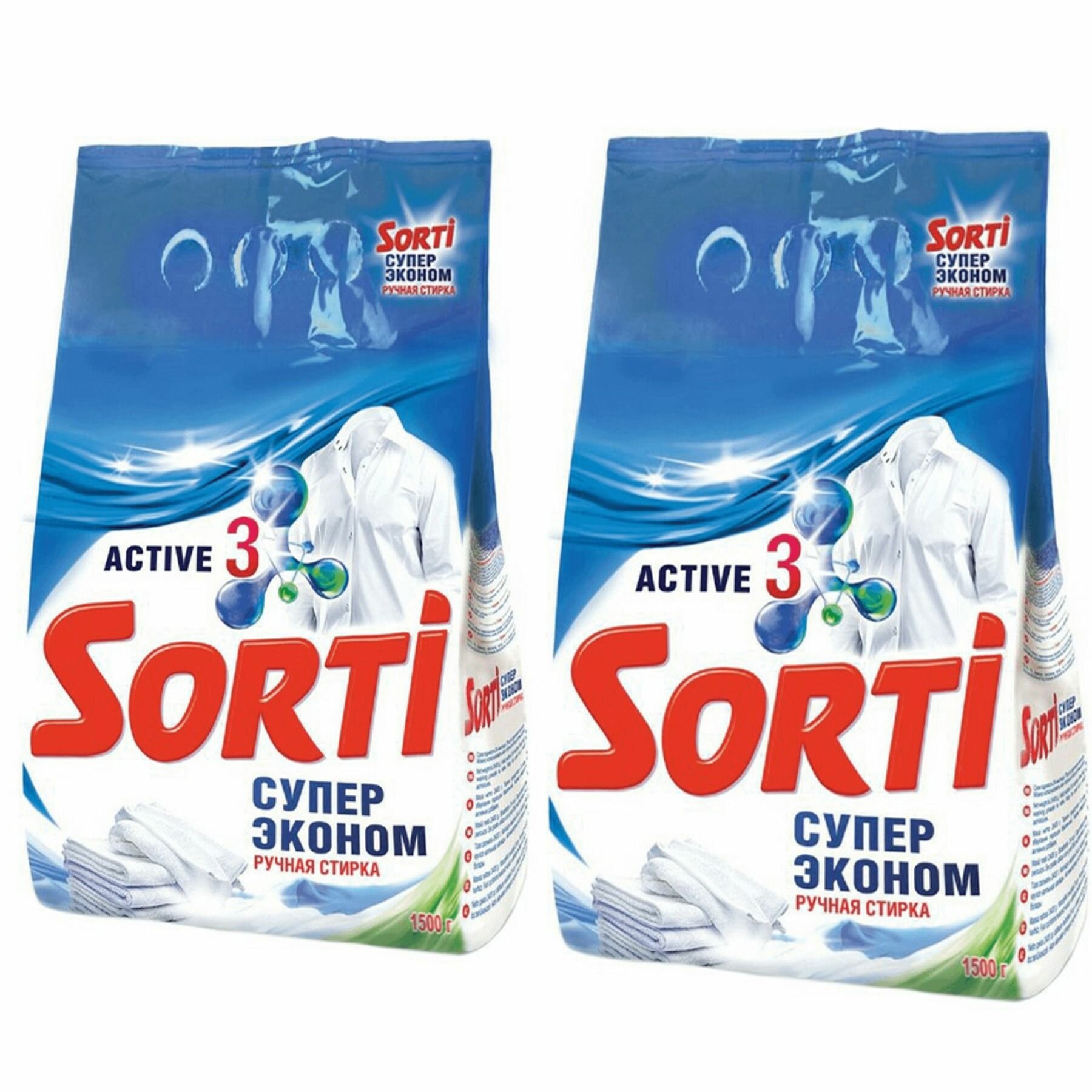 Sorti Стиральный порошок для ручной стирки Супер эконом, 1,5 кг, 2 уп