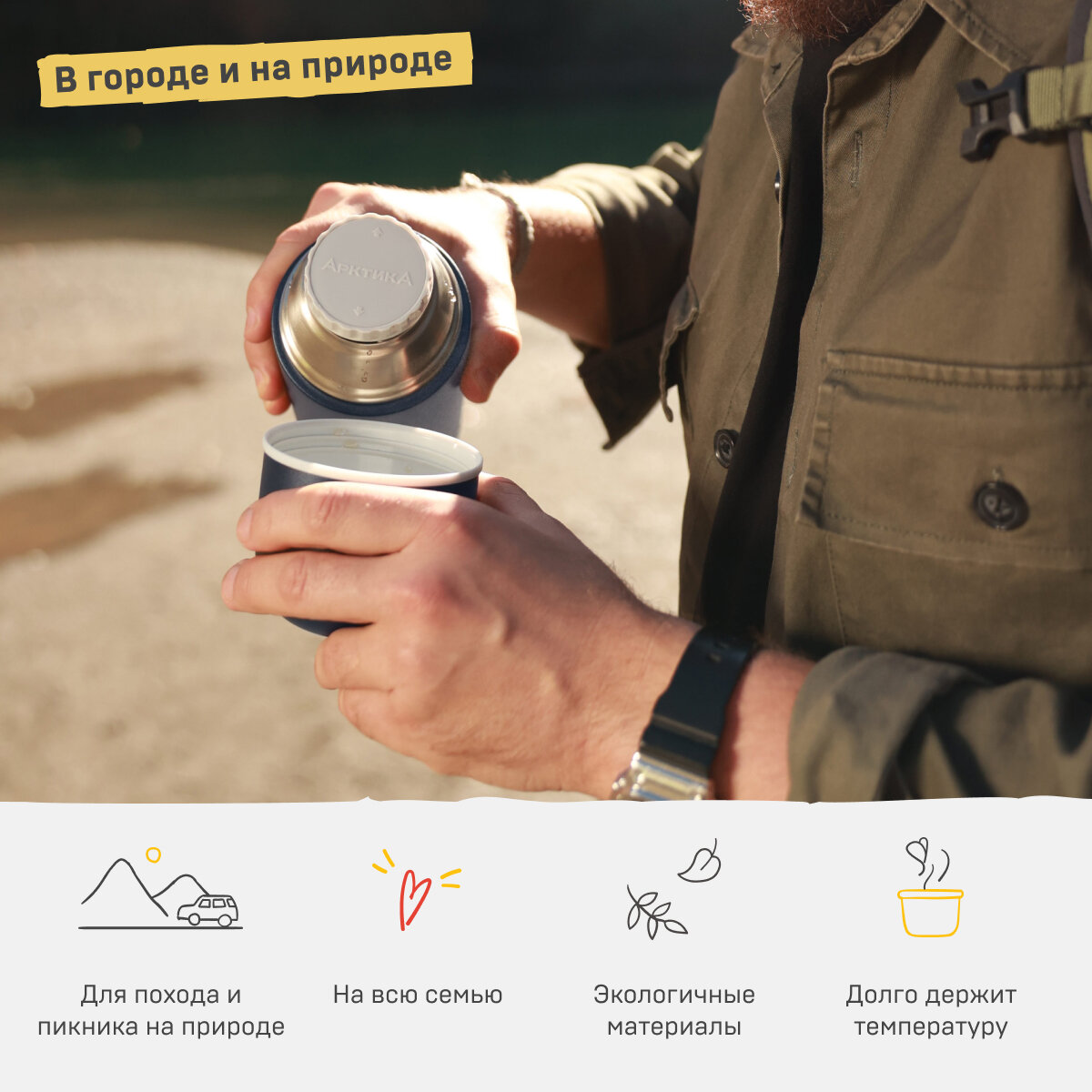 Арктика Термос для напитков компактный Арктика 105-1000 (1000 мл, серебро)