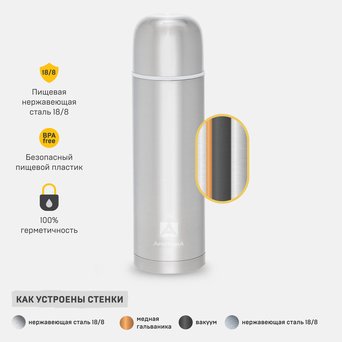Арктика Термос для напитков компактный Арктика 105-1000 (1000 мл, серебро)