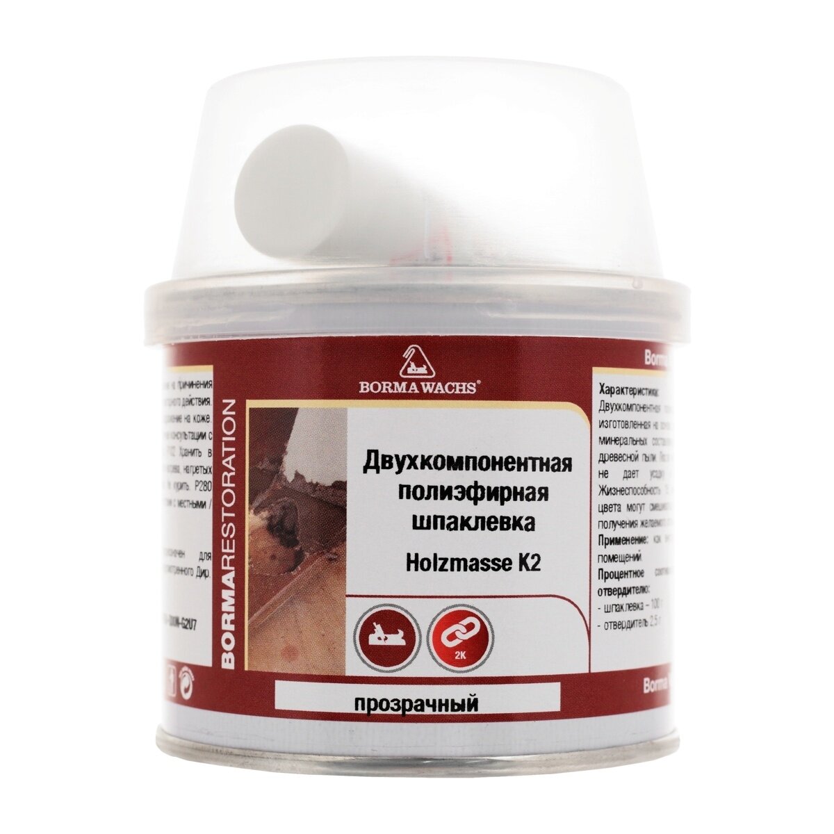 Двухкомпонентная полиэфирная шпаклевка Borma Holzmasse K2 750 мл Прозрачный 1960TR-6T