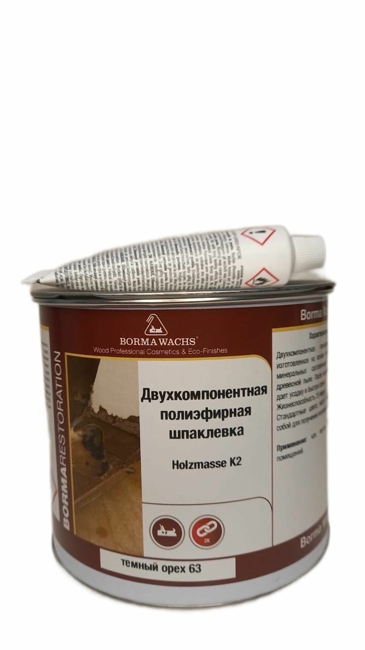 Купить Шпаклевка полиэфирная двухкомпанентная Темный орех 63 Borma Wachs HOLZMASSE K2 750 1960NS-6Tмл