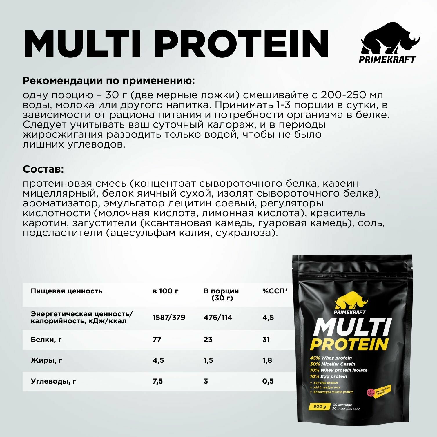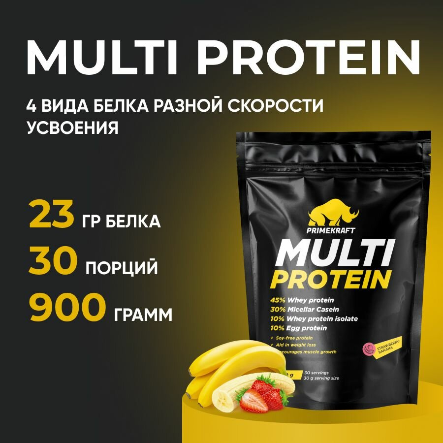 Многокомпонентный протеин PRIMEKRAFT "Multi Protein", Клубника-Банан, 900 г