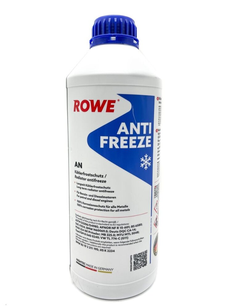 ROWE 21010005099 Антифриз ROWE HIGHTEC ANTIFREEZE AN G11 (5л) ASTM D3306/D4985,AFNOR NF R 15-601,BS 6580,SAE J1034,BMW N60069.0,Deutz DQC CA-14,MAN 324 NF/Pritader,MB 325.0,MTU MTL 5048,Opel/GM B 040 0240,VW TL 774-C (G11)BMW 83 19 2 211 195,JIS K 2234