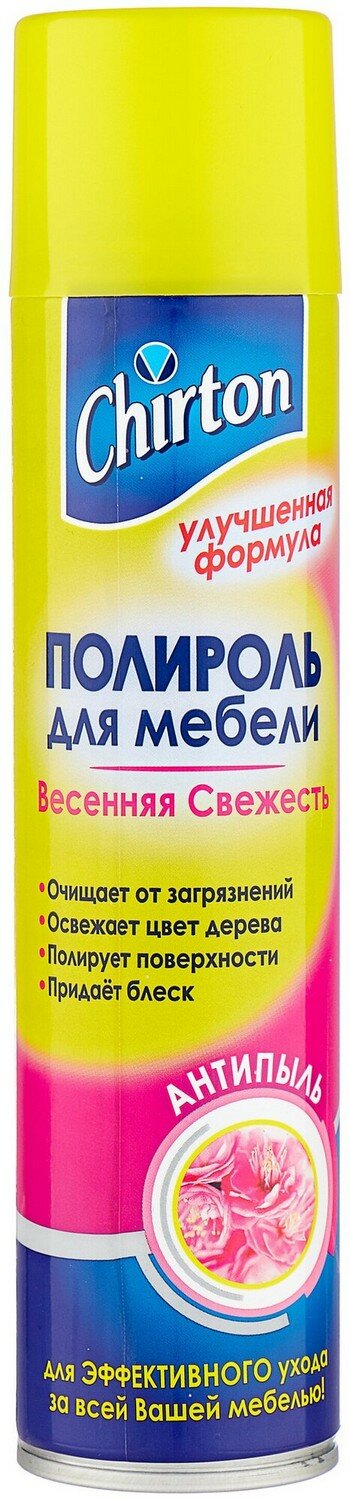 Полироль для мебели CHIRTON Антипыль Весеняя Свежесть, 300 мл