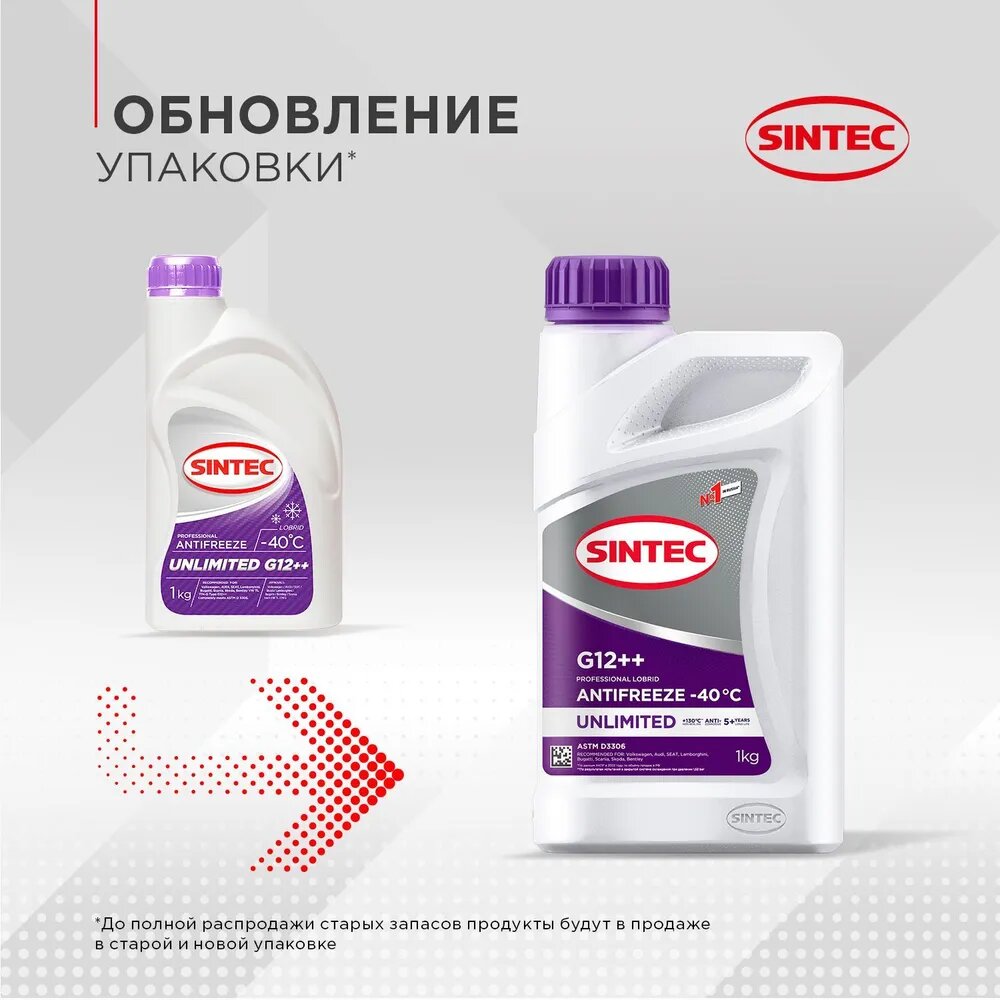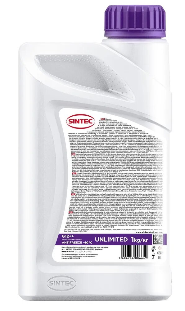 Антифриз (-40) фиолетовый G12++ Unlimited violet SINTEC 1кг. /кор.12шт/ SINTEC 990565 | цена за 1 шт