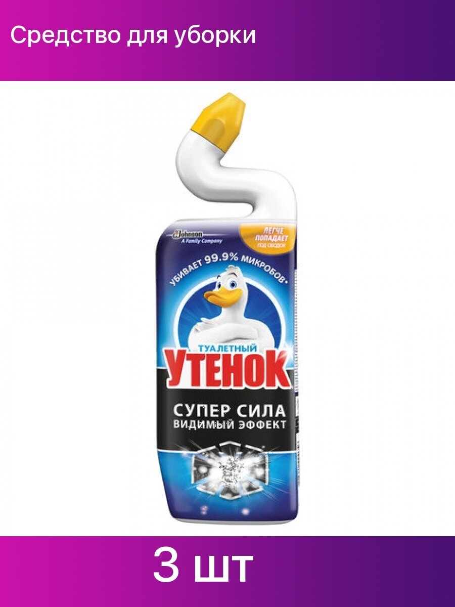 Комплект 3 шт, Средство для уборки туалета 500 мл туалетный утенок Супер Сила "Видимый Эффект", 696888