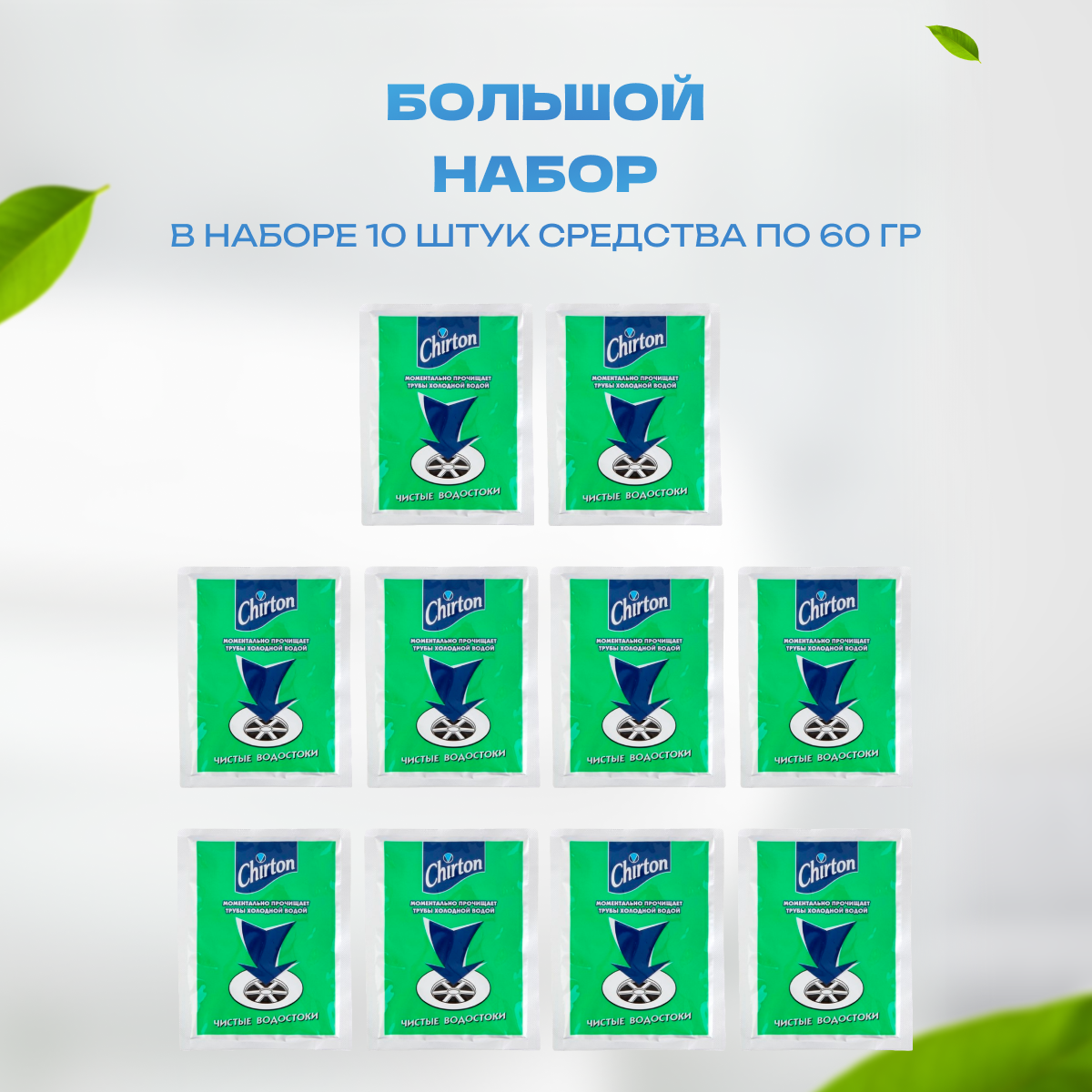 Порошок Chirton для прочистки канализационных труб Холодной водой 60 гр (10 шт)