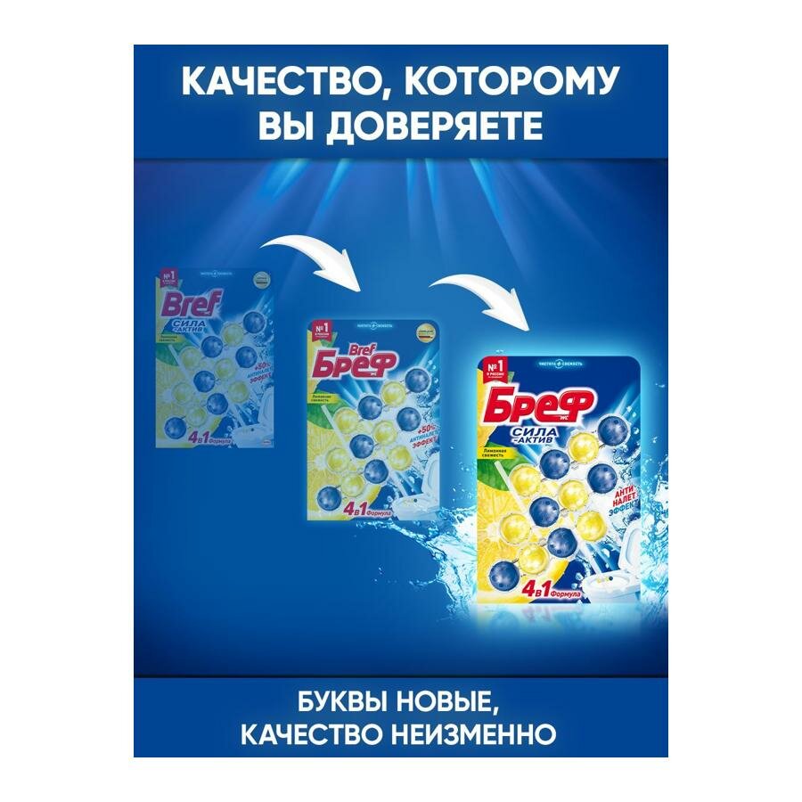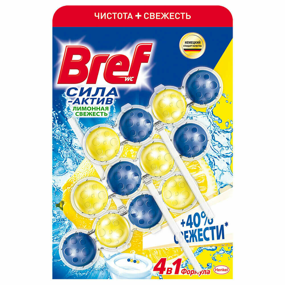 Гигиенический блок для унитаза Bref "Сила-Актив. Лимонная свежесть", 2x50г, блистер (9000100656832)