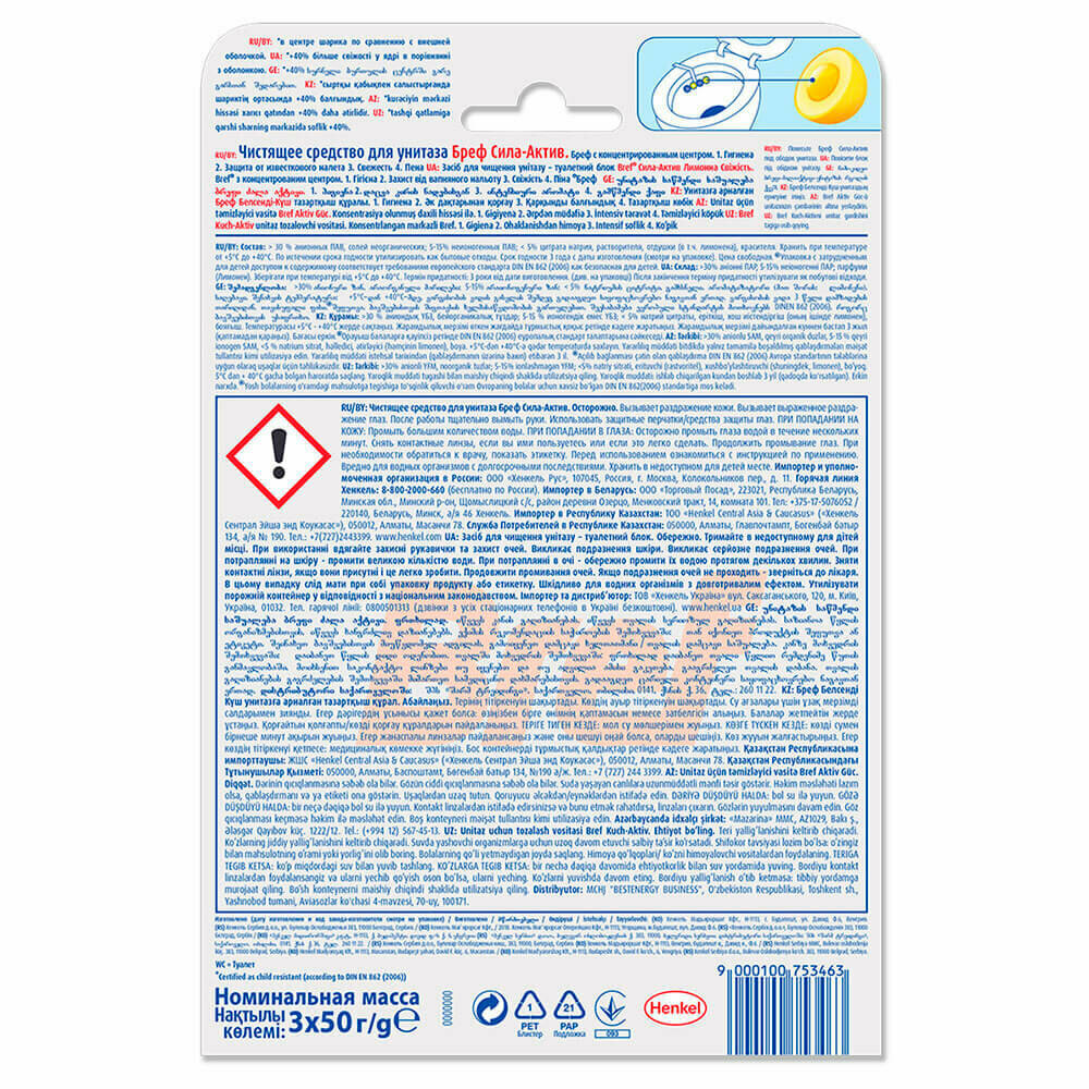 Подвесной блок для унитаза Бреф Сила-Актив Лимонная Свежесть 3*50 г