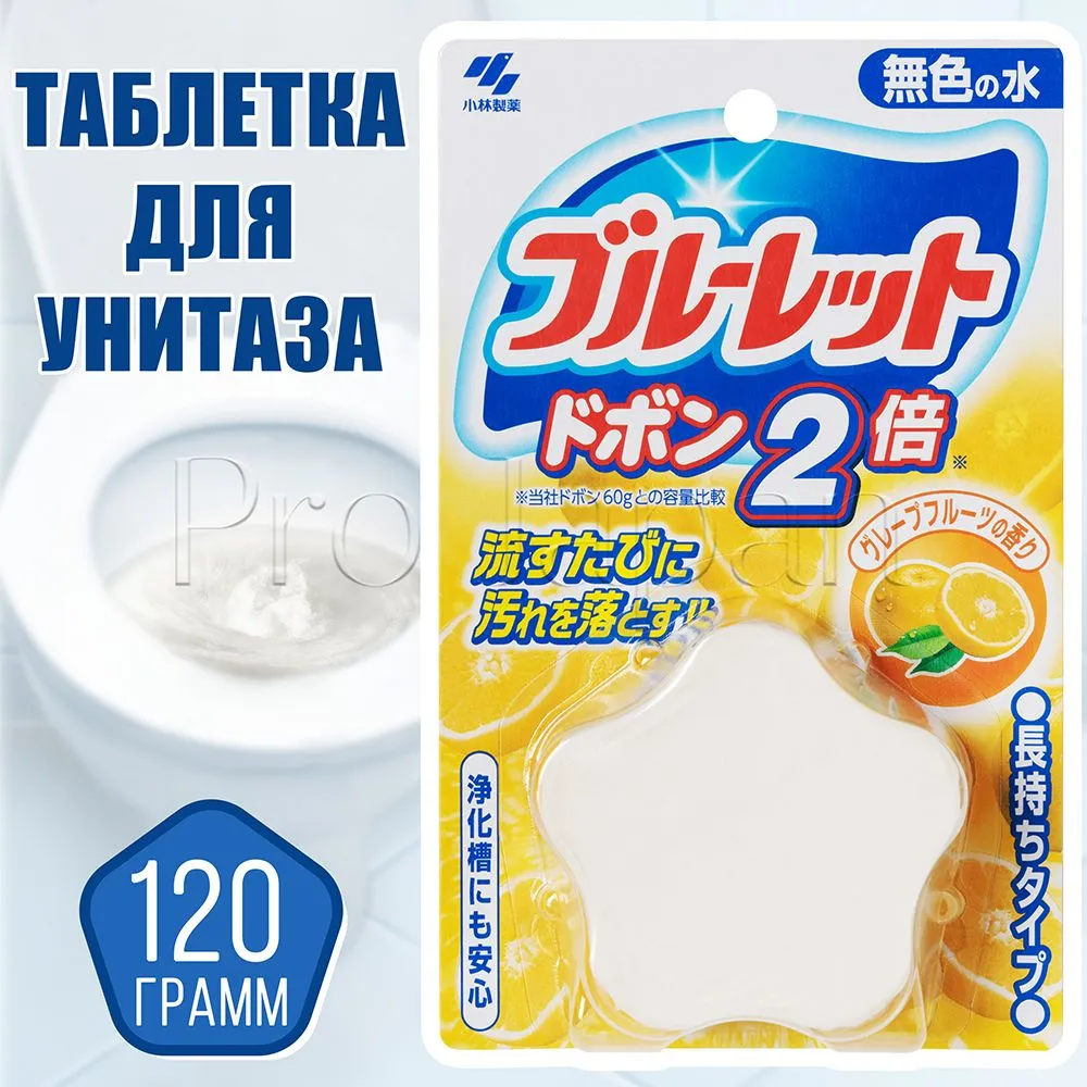 Таблетка для бачка унитаза Kobayashi Bluelet Dobon Double Grapefruit, аромат грейпфрута, 120 гр