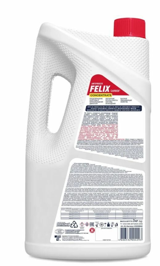 FELIX 430206042 Антифриз FELIX Carbox G12+ -45 С красный (концентрат) 3 кг