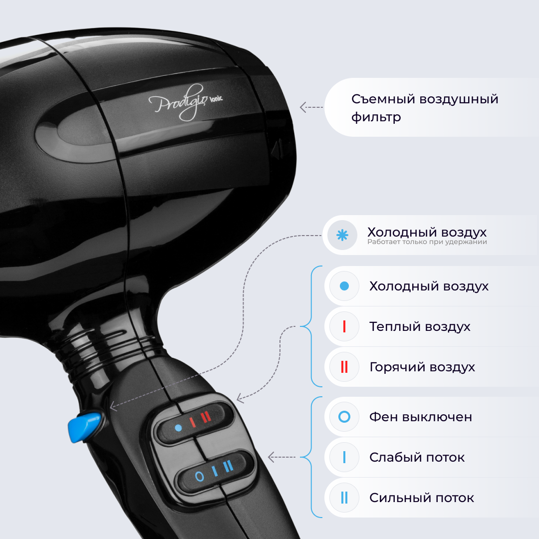 Фен Prodigio 2300W с ионизацией