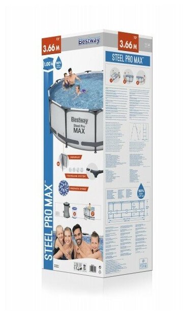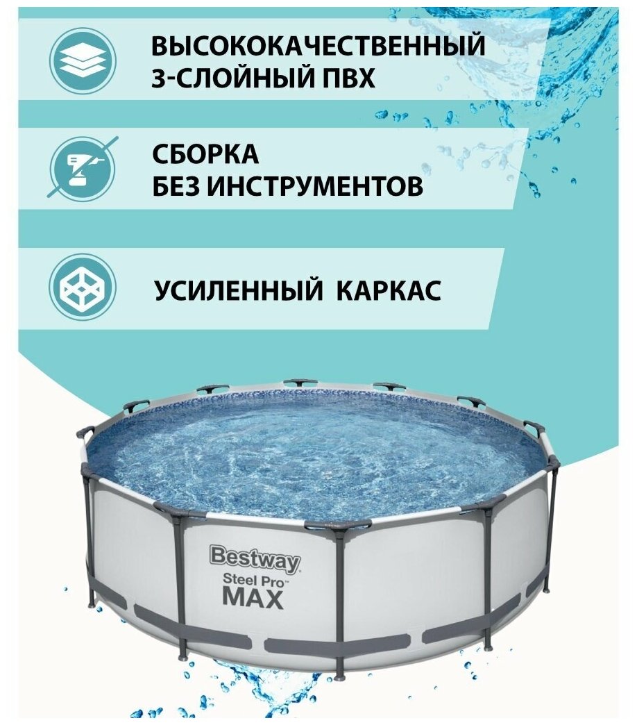 Бассейн Bestway "Steel Pro MAX", каркасный, диаметр 366 см, высота 100 см, объем 9150 л, фильтр-насос, 56418