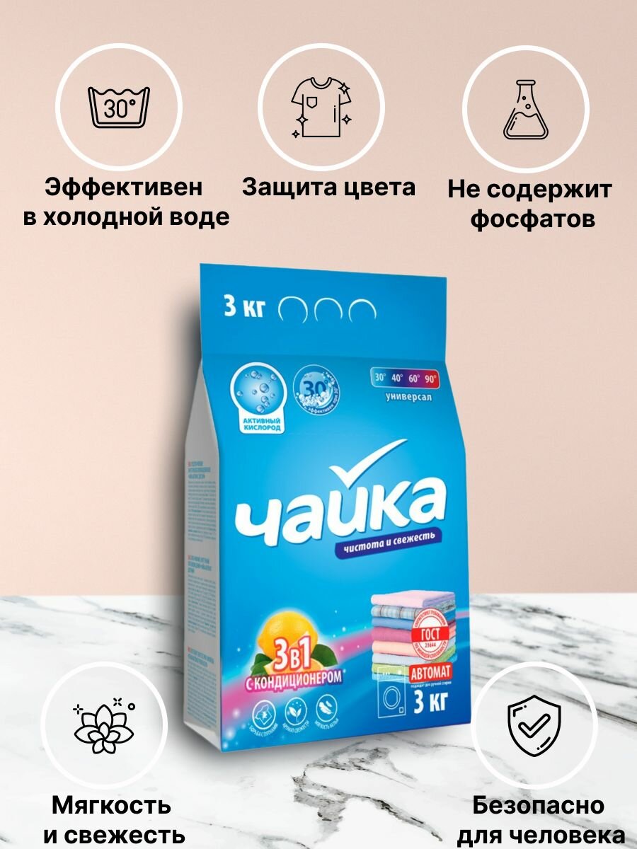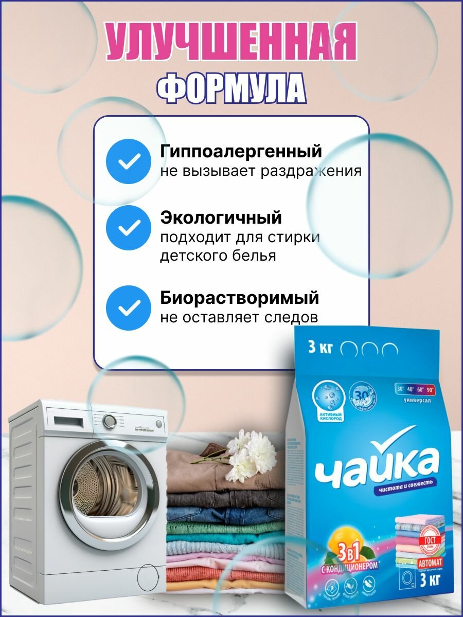 Купить Стиральный порошок Чайка 3 в 1 с кондиционером