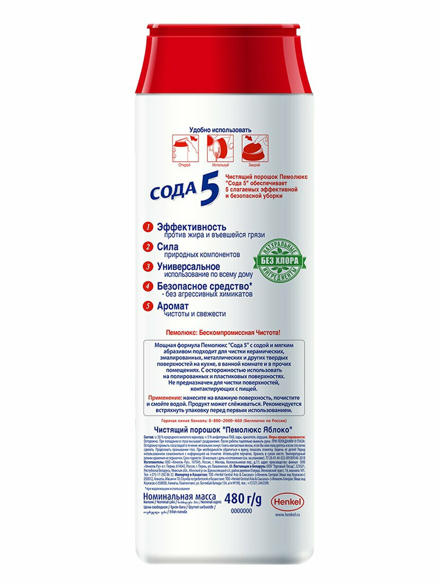 Купить Чистящее средство универсальное Пемолюкс Сода-5 "Яблоко", порошок, 480г (2073824/2414453)