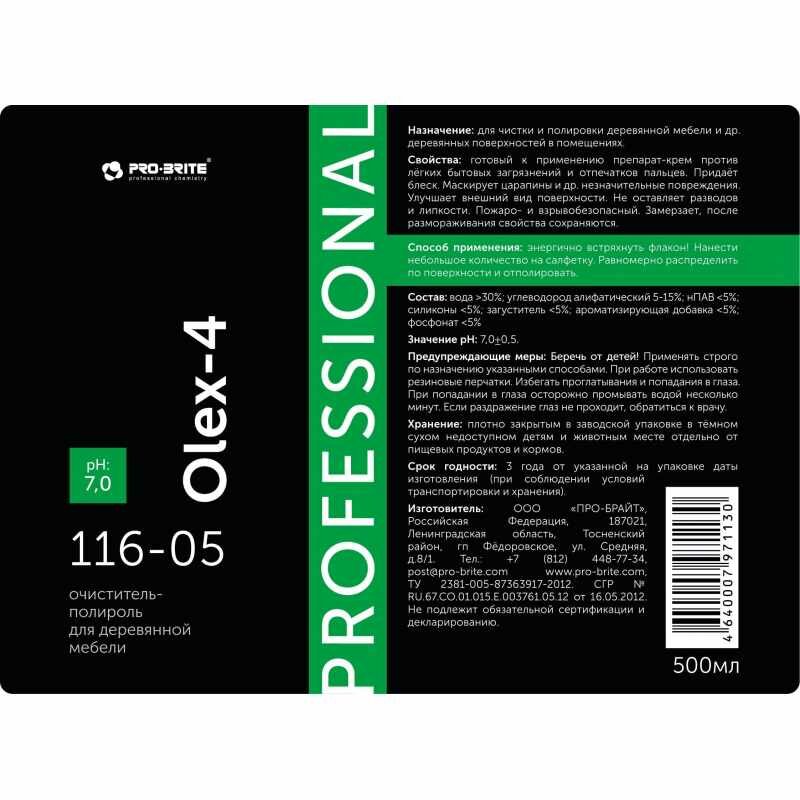 116-05 Очиститель-полироль Pro-Brite OLEX-4 For Wood / для деревянной мебели / 500 мл