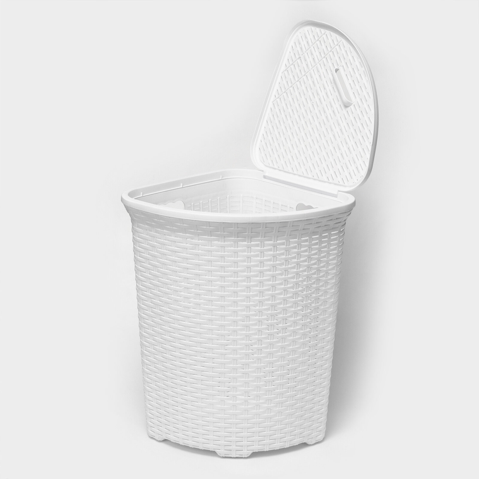 Корзина для белья угловая с крышкой «Ротанг», 60 л, 40×40×58 см, цвет белый