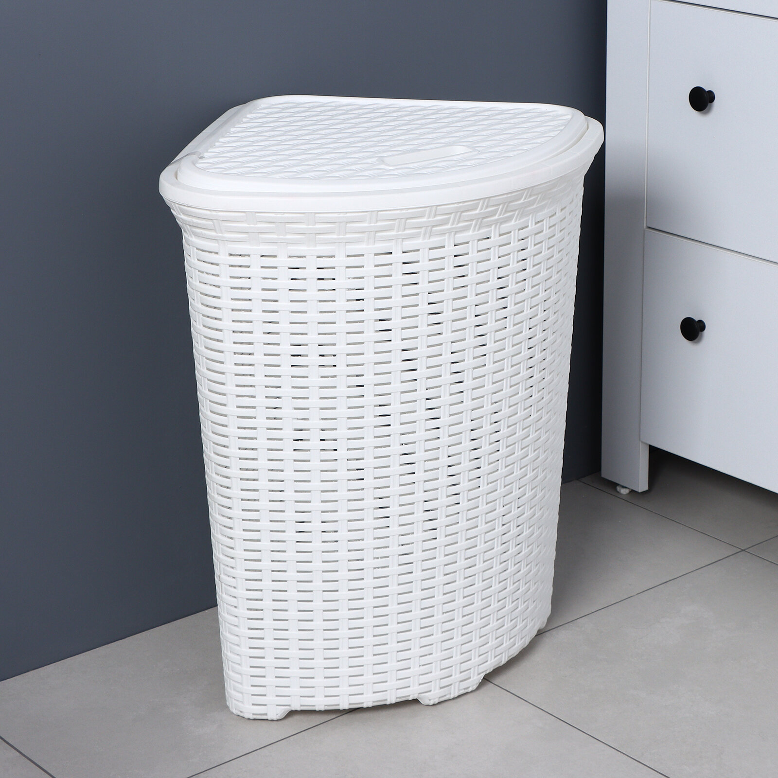 Корзина для белья угловая с крышкой 60л Ротанг (белая)
