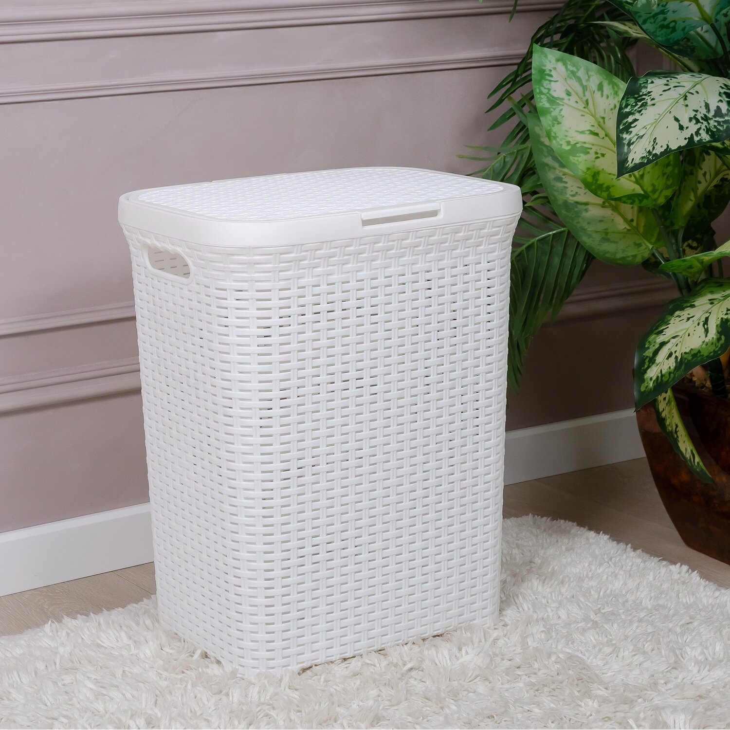 Корзина бельевая с крышкой "Ротанг", 40 л, 37x29x48 см, цвет белый