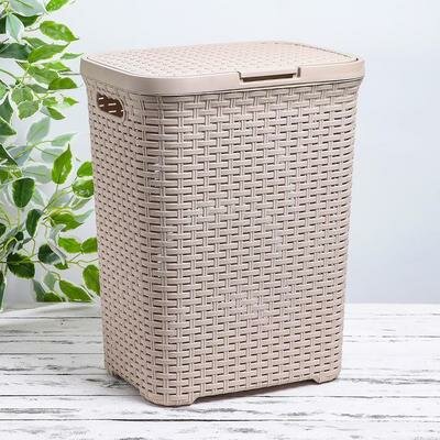 Корзина для белья с крышкой 40л Ротанг, пластик, цвет капучино