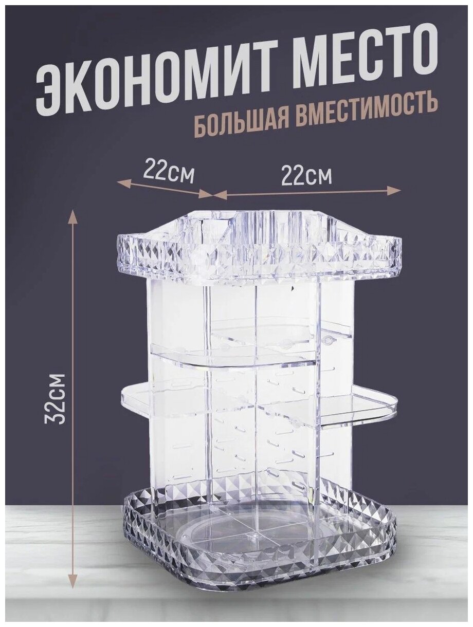 Вращающийся акриловый органайзер для косметики Diamond интересное: