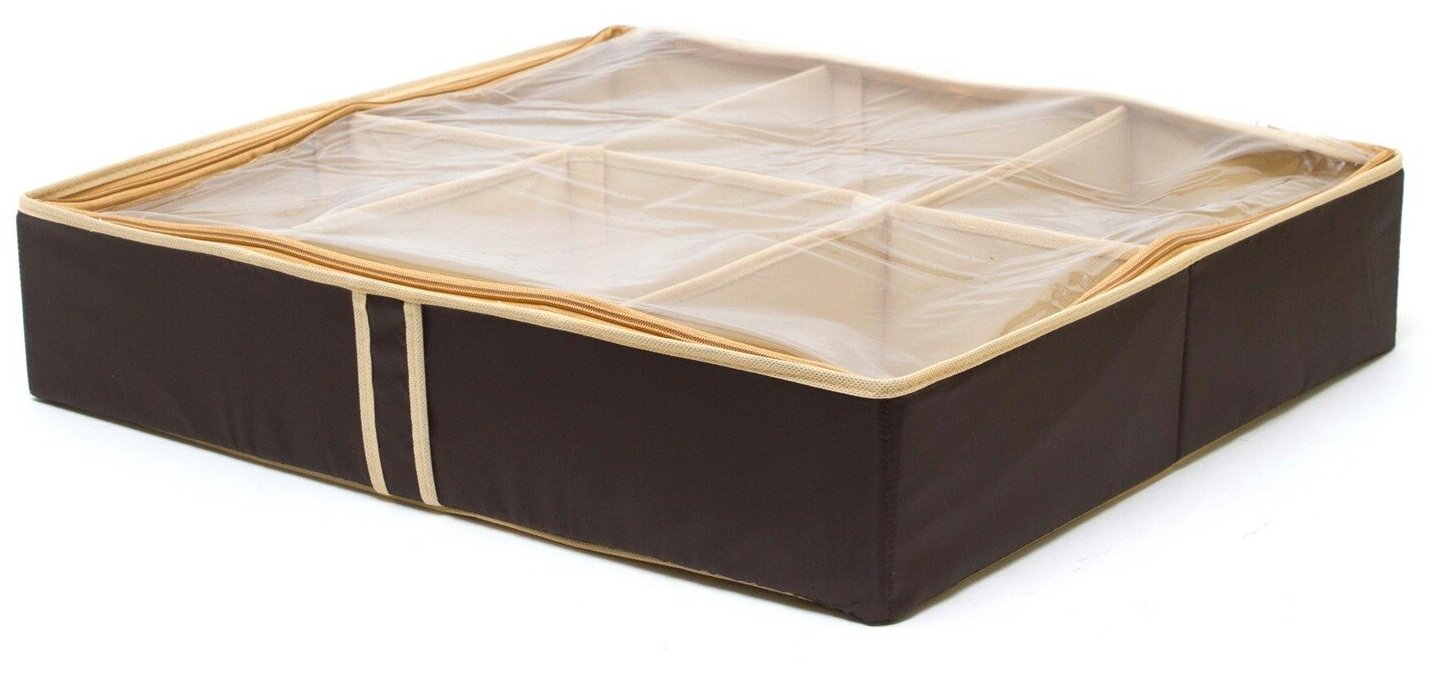 | Отзыв: | Заменяет собой несколько коробок из-под обуви в подкроватьи. Туфли (в т.ч. на шпильке), кроссовки, кеды и невысокие ботинки помещаются в ячейках отлично. Сапоги и высокие - нет, но можно убрать часть перегородок (они на липучках). За счет прозрачной крышки видно, что где лежит. |