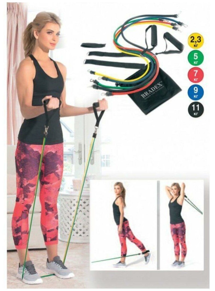 Набор эспандеров универсальный Bradex спорт профи SF 0240, нагрузка 2 -11кг