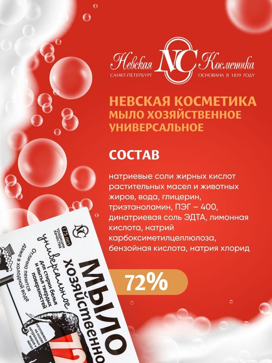 Мыло Невская косметика, хозяйственное, универсальное 72 %, 180 г
